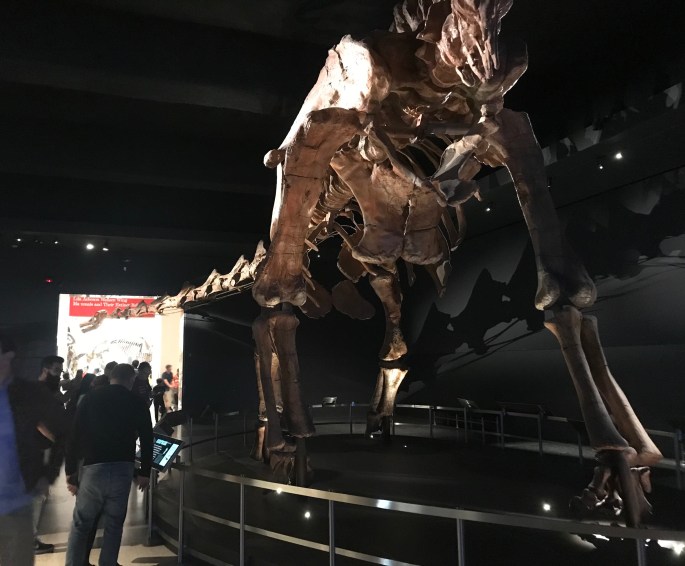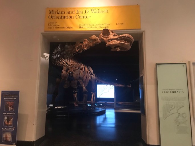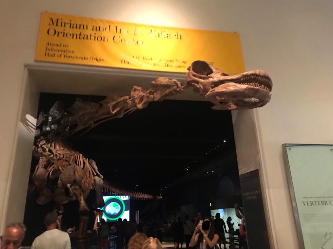 4階にAMNHの紹介動画が垂れ流されているオリエンテーションセンターがあります。そこに、2016年から新登場したのがこちらの枠から頭がはみ出す長大さを誇る竜脚類 Sauropod!