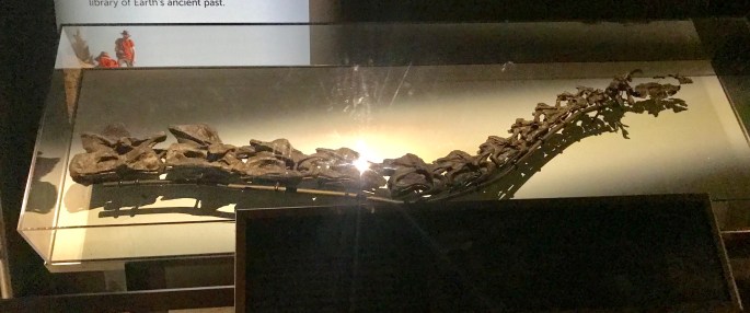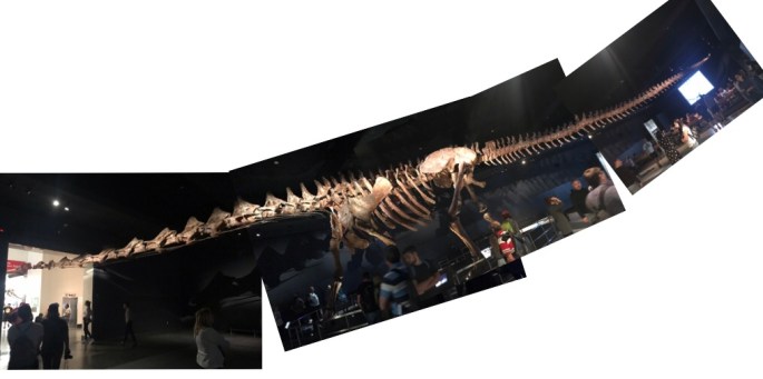 4階にAMNHの紹介動画が垂れ流されているオリエンテーションセンターがあります。そこに、2016年から新登場したのがこちらの枠から頭がはみ出す長大さを誇る竜脚類 Sauropod!