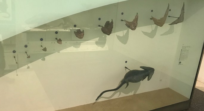 原索動物や脊索動物の展示を経て、基盤的脊椎動物である軟骨魚類からスタートです。
