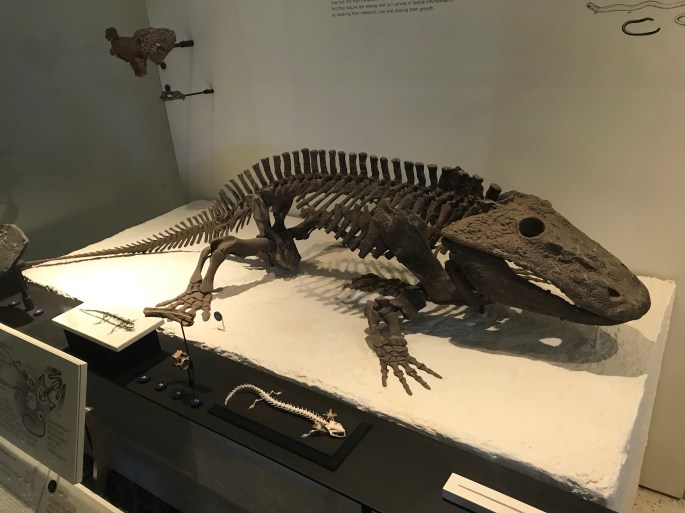 三畳紀の北米で最大の分椎類Temnospondyli の一つとして知られています。頭骨だけニューメキシコ自然史博物館編で紹介しましたが、こんな姿だったんですね(両生類として特に不思議な姿ではない)。