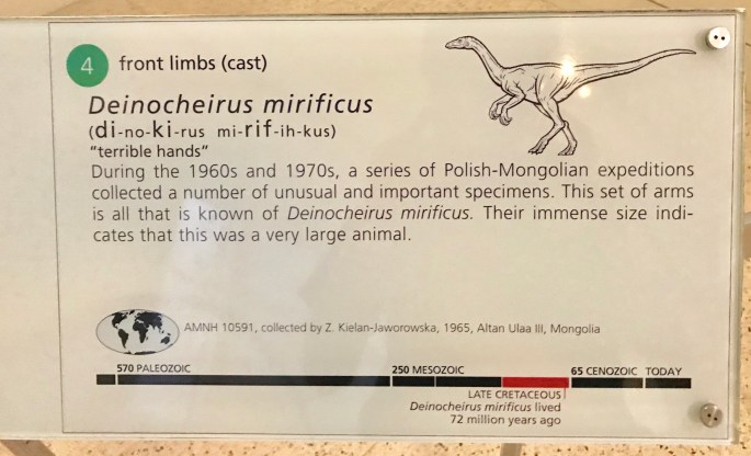 デイノケイルスのキャプション。復元図はこんな感じでした。このプロポーションであの腕は狂気の沙汰と言えます。
