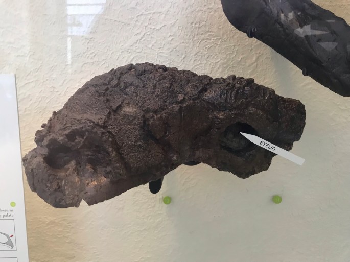 この標本は命名(1970年)の2年後からここに展示されているのですが、その時に「ペルトサウルス(Peltosaurus)」と誤記されて混乱を招いたそうです。