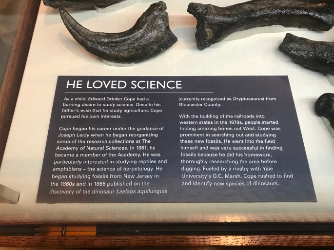 このキャプションにはドリプトサウルスを研究したエドワード・コープ博士のキャリアについて軽く書いてあります。