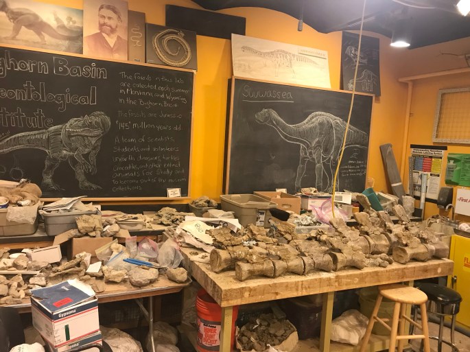 竜脚類 Sauropod の椎骨らしきものが置いてありますが、これはクリーニングの余地が残されてなさそうのでお飾りでしょう。