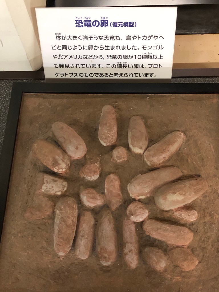 京都市青少年科学センターのオヴィラプトル類の卵。キャプションはプロトケラトプスのまま。
