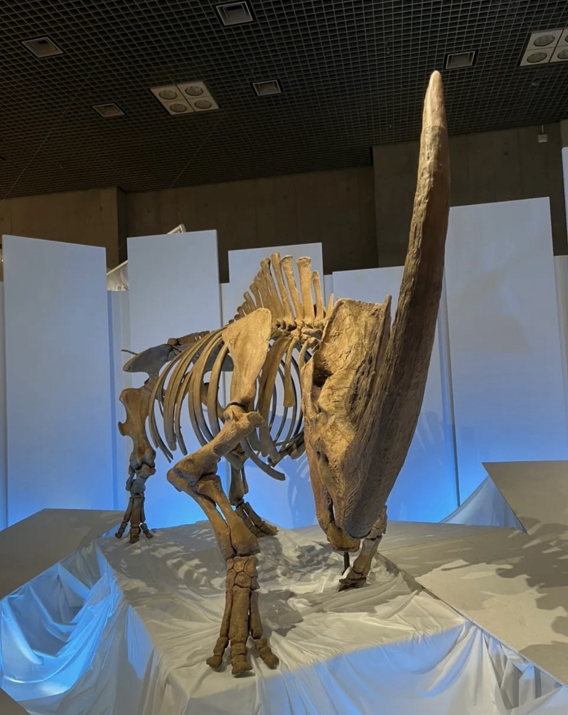 この角は側面が広く、幅が狭いブレード状なので、首を左右に振り雪をかき分けて植物を探すのに使っていたと考えられているそう。闘争にも使ったのでしょうけどね。かっこいいだけでなく複数の用途をもつ便利な道具だったわけです。