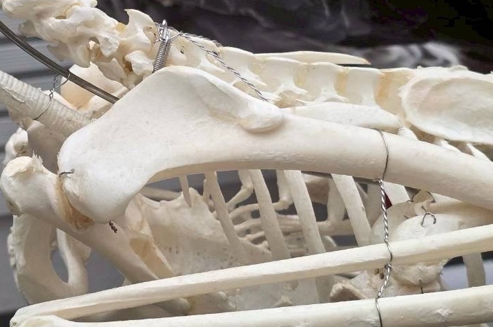 一部上腕骨で隠れていて見えないので、これは見たことがない方は実物をどこかで見ていただきたいのですが、本当に鉤状突起が影も形もなく普通の非鳥類型恐竜のようにシンプルな見た目になっているのです!