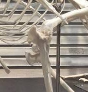 腸骨の下に仙椎だけでなく胴椎や尾椎もかなりの個数隠れているのが観察できます。ほぼ腸骨の前後長=大腿筋の前後長らしいので、腿は短いながら逞しい筋肉がついていたことが想像できます。この写真ではわかりにくいですが。