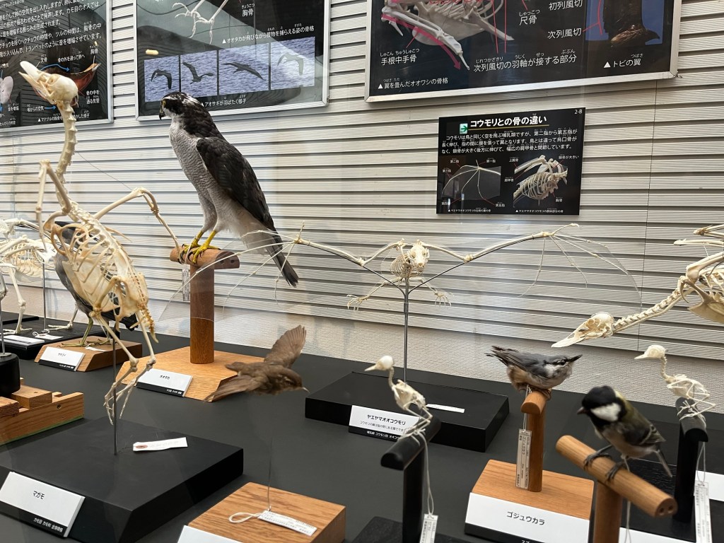 まず関心したのが、展示は科や目といった分類枠を基準にしつつも、トピックごとに標本が横断的に配置されていたことです。例えば「飛翔」「潜水」「採食様式」など、機能やテーマで標本が並んでいました。これがとても良かったです。同じ分類群内での比較だけでなく、異なる系統間での収斂や差異が一目瞭然なわけです。これは単純に系統樹をなぞるだけでは見せられないものです。比較解剖の面白さを、我々にも直感的に伝える設計でした。