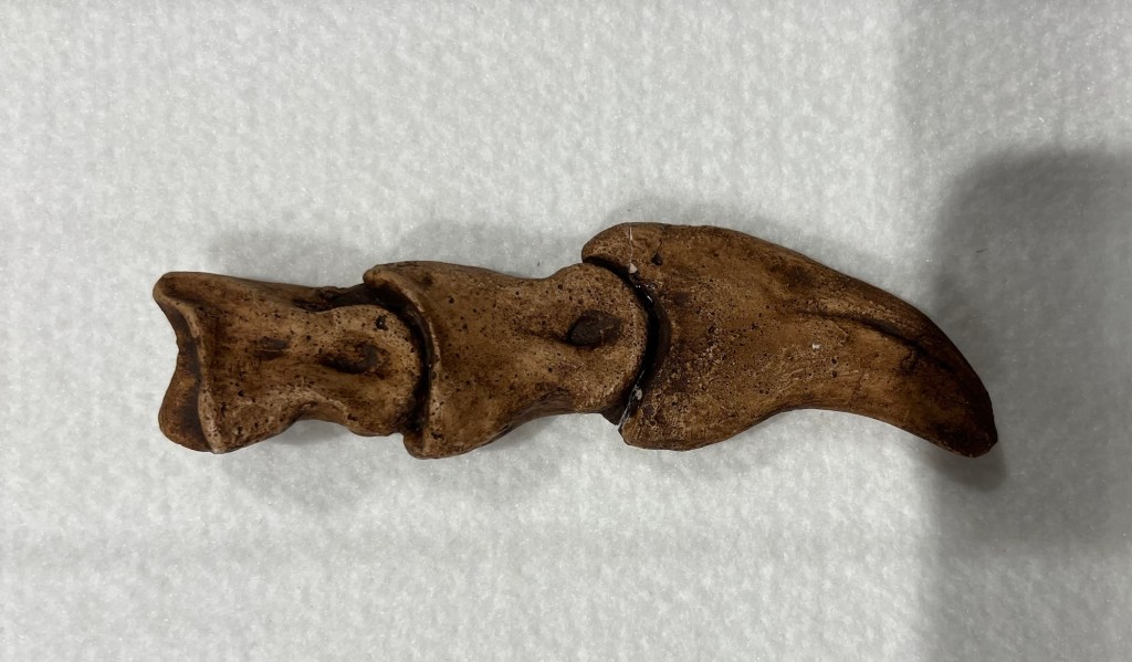 獣脚類の趾骨。これも関節部が石油製品で埋まっていますが、実物と書いてありました。