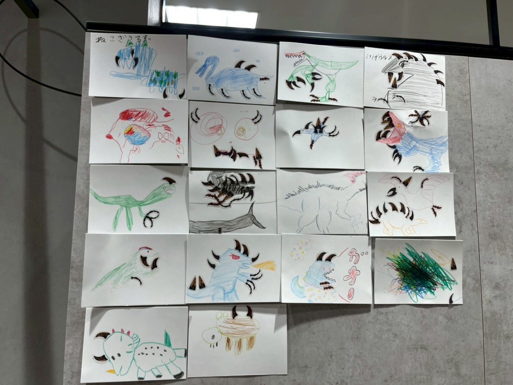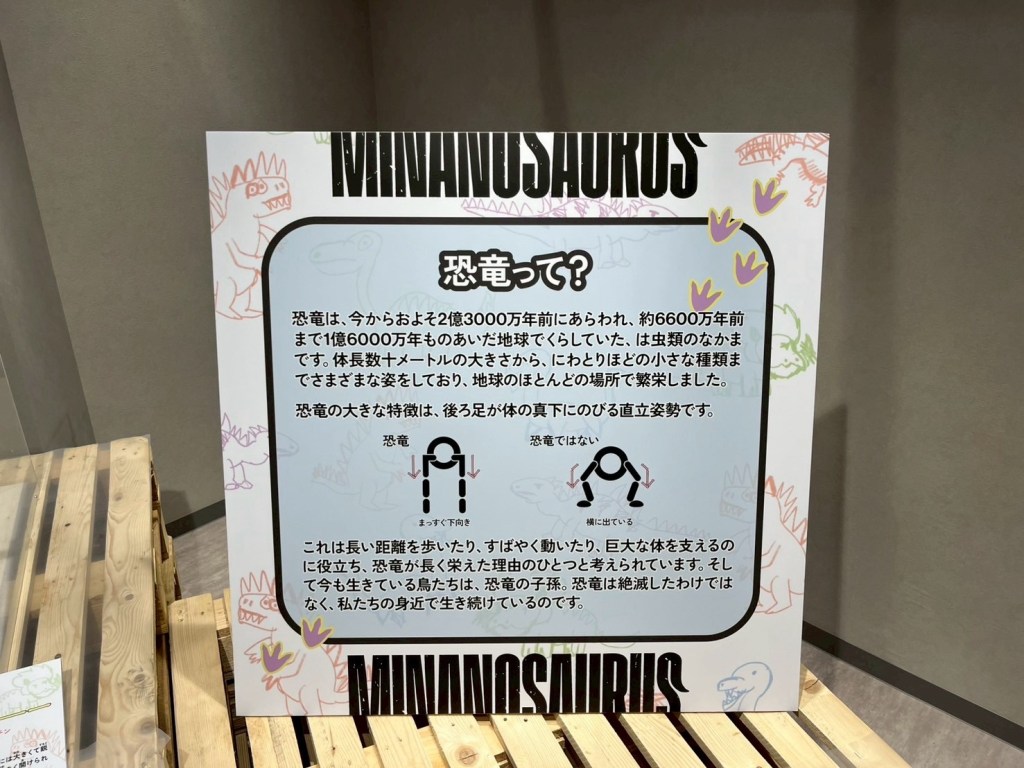 “これまでに得た情報をもとに、想像力を広げて自分だけの恐竜を生み出す体験「ミナノザウルスを描こう」へご参加いただけます。想像しながら自由に描き足すことで、創造や発想を育むことができます。”だそうです。