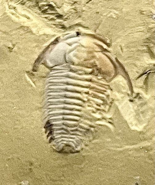 シルエットは一見して三葉虫っぽいですし、実際三葉虫形類のなかまではあるようですが、三葉虫と違ってかたい殻をもっていません。それでもこんなにきれいに残っているのがすごいですね。