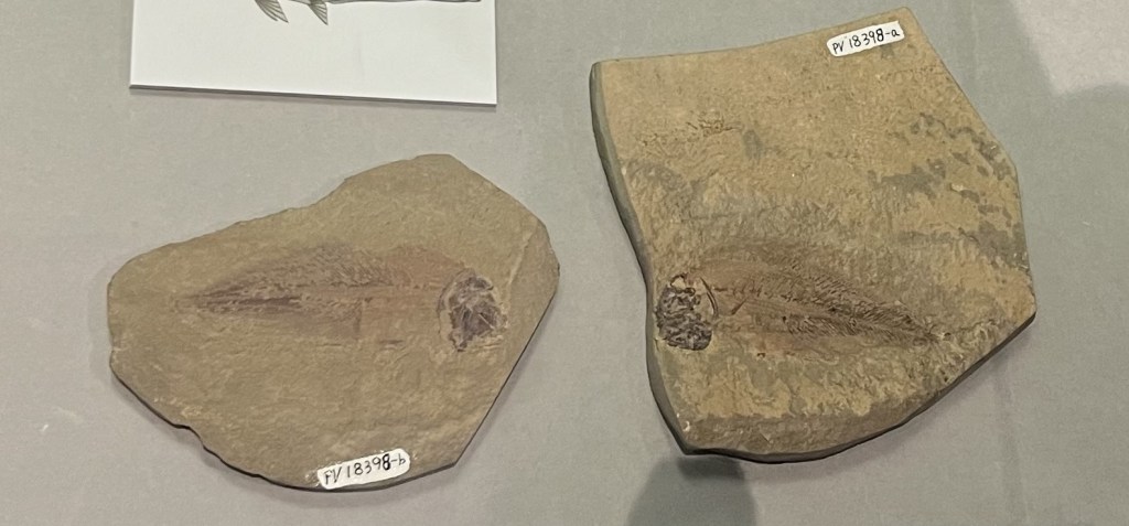 一見シーラカンスらしく見えないですが、図録によると「シーラカンス類のなかでもとびぬけて奇妙な形態をしている」との事。まあシーラカンスの中ではそうなのかもしれないですが、サカナ基準だと“奇妙”は、「おい!ちょっと言い過ぎじゃないか?」と思いました。