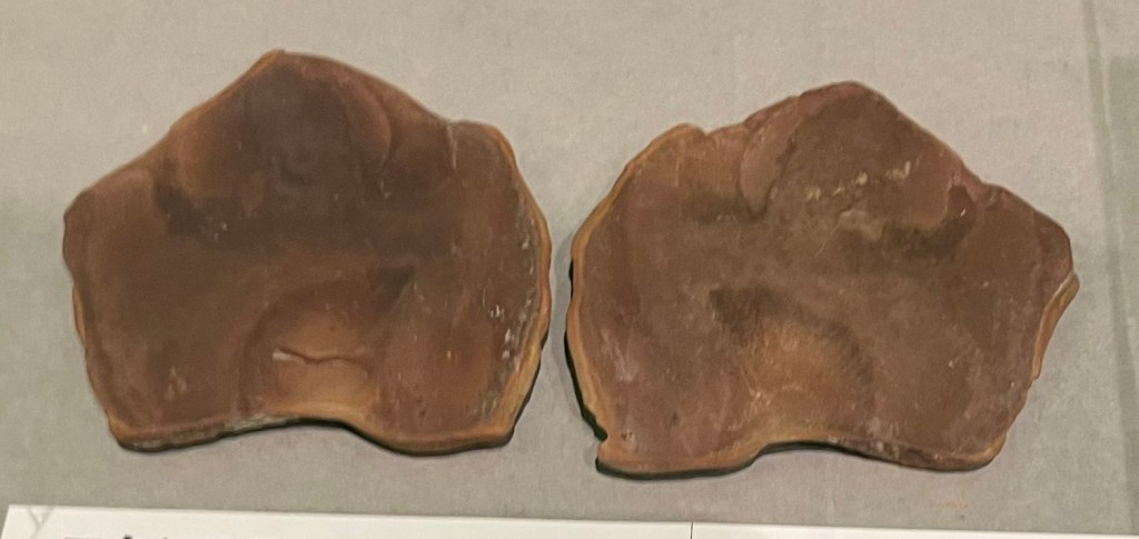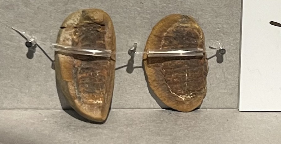 上のレプリカはしばしば見ますが、実物は初めて観ました。皮骨 Osteoderm なだけあって、恐竜や我々の頭骨要素とは全然違うという事と、下顎だけははっきり認識できますが、あとは難しいです。