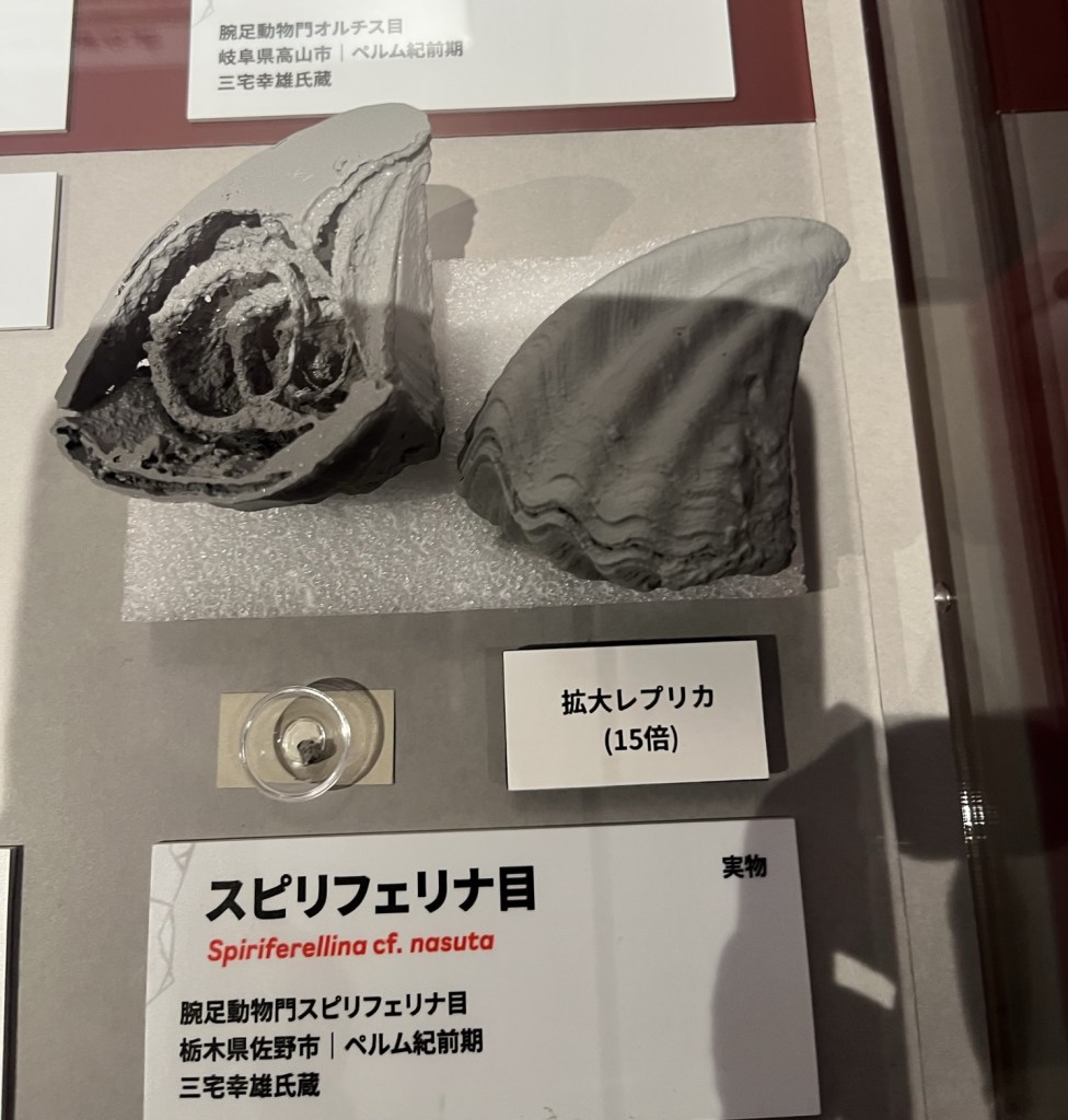 P-Tイベントを生き延びた腕足類のグループとしてスピリフェリナ類 Spiriferina スピリフェレリナ Spriiferellina などが展示されていました。