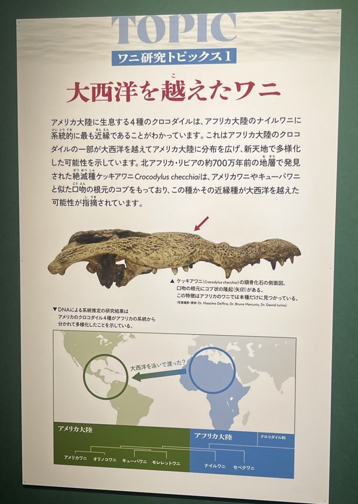 改めて感じたのは、ワニという生物が中生代の面影を色濃く残しながら現代まで生き延びていることのアリガタさです。展示を通して、その連続性を実感できる良い機会でした。