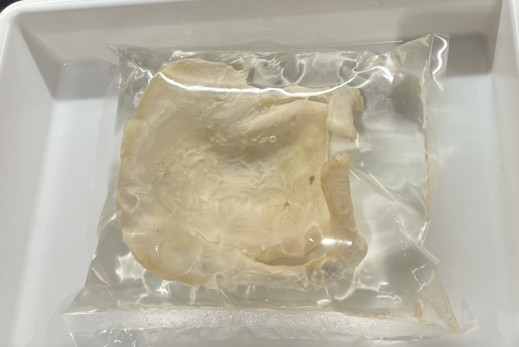 キャプションには皮骨は軟組織に埋もれているので皮革側に取り残されている事が説明されています。