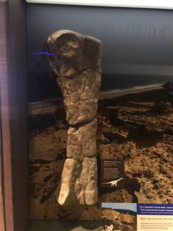 アンゴラティタン・アダマストル Angolatitan adamastor の右上腕骨のホロタイプのレプリカ。これ以外は肩甲骨、橈骨、尺骨、3つの中手骨がホロタイプに含まれているそう。