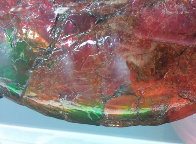 (知らない人のために説明すると、成分が色のある鉱物の結晶に置換した 圧力変性によってアンモナイトの殻に含まれるアラゴナイトの結晶構造が変化してできる宝石で、僕の知る限りロッキー山脈の東斜面からのみ産出する。アルバータ州の州宝石)