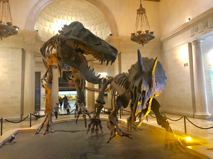 ほぼ最初に観ることになるのが施設中央に存在するこちらの展示。トリケラトプス・プロルスス Triceratops prorsus ティラノサウルス Tyrannosaurus rex の人気コンビ。