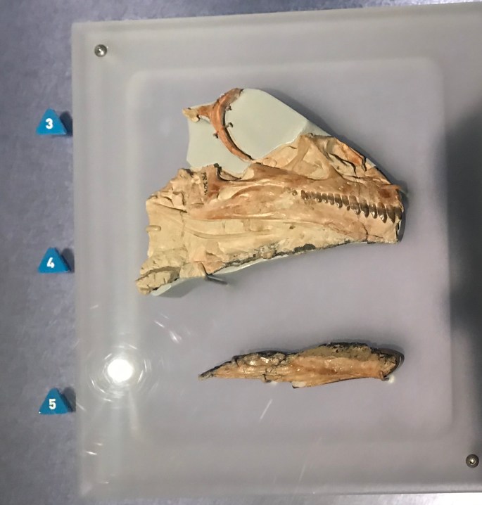 目玉展示のクリオロフォサウルス Cryolophosaurus ホロタイプの頭骨。フィールド博物館でも見ましたけど。