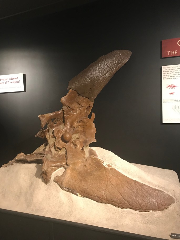 もちろんモンタナ州立大学の施設なので、トロケラトプス仮説に基づいてキャプションでは成体の(つまりトロサウルス型 Toromorph)トリケラトプス・ホリドゥス Triceratops horridus 名義。