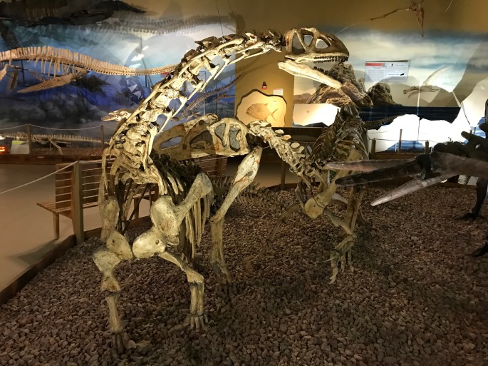 魚類や両生類、アンモナイトをはじめとする無脊椎動物の化石がかなり充実しているのですが、ダイナソー・センターを名乗るだけあってメインは恐竜です。