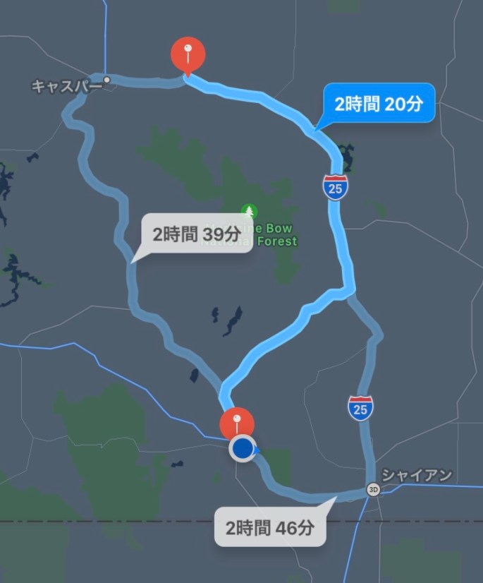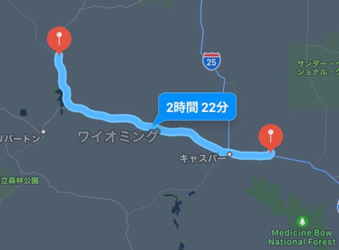 気を取りなおしてコロラドへの移動を再開すると今度は地図上にララミー Laramie の文字が!