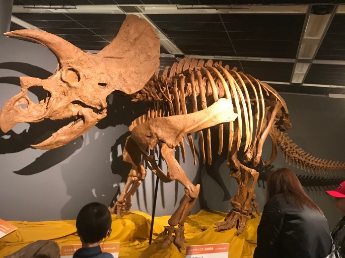おとといの角竜軍団と同じく「恐竜戦国時代の覇者トリケラトプス展」からの巡業。その時も目玉展示の扱いでした。