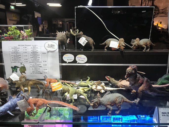 ミュージアムショップの一角。なぜかサファリのケラトプス類はレガリケラトプスだけ。棚の上に散在していて、この画像だけで4体います。本当です。そしてお土産に一体買いました。