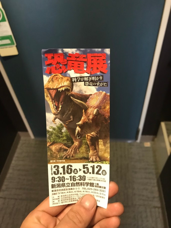 一応チケットの写真も撮ってたんでした。そういえば整理券が配られるほどの盛況ぶりでした。そんなのは他のどの恐竜博でも経験ないです。