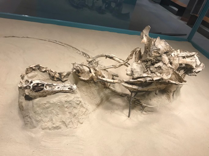 プロトケラトプスとヴェロキラプトル Velociraptor が組み合ったまま死んで今も組み合っているという物。ちなみに子供の頃始めてみたときはどうなってるのか説明されてもわかりませんでした。
