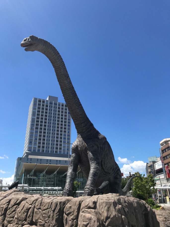 駅前に恐竜の動刻なんて常時置いてるのもここだけではないでしょうか。