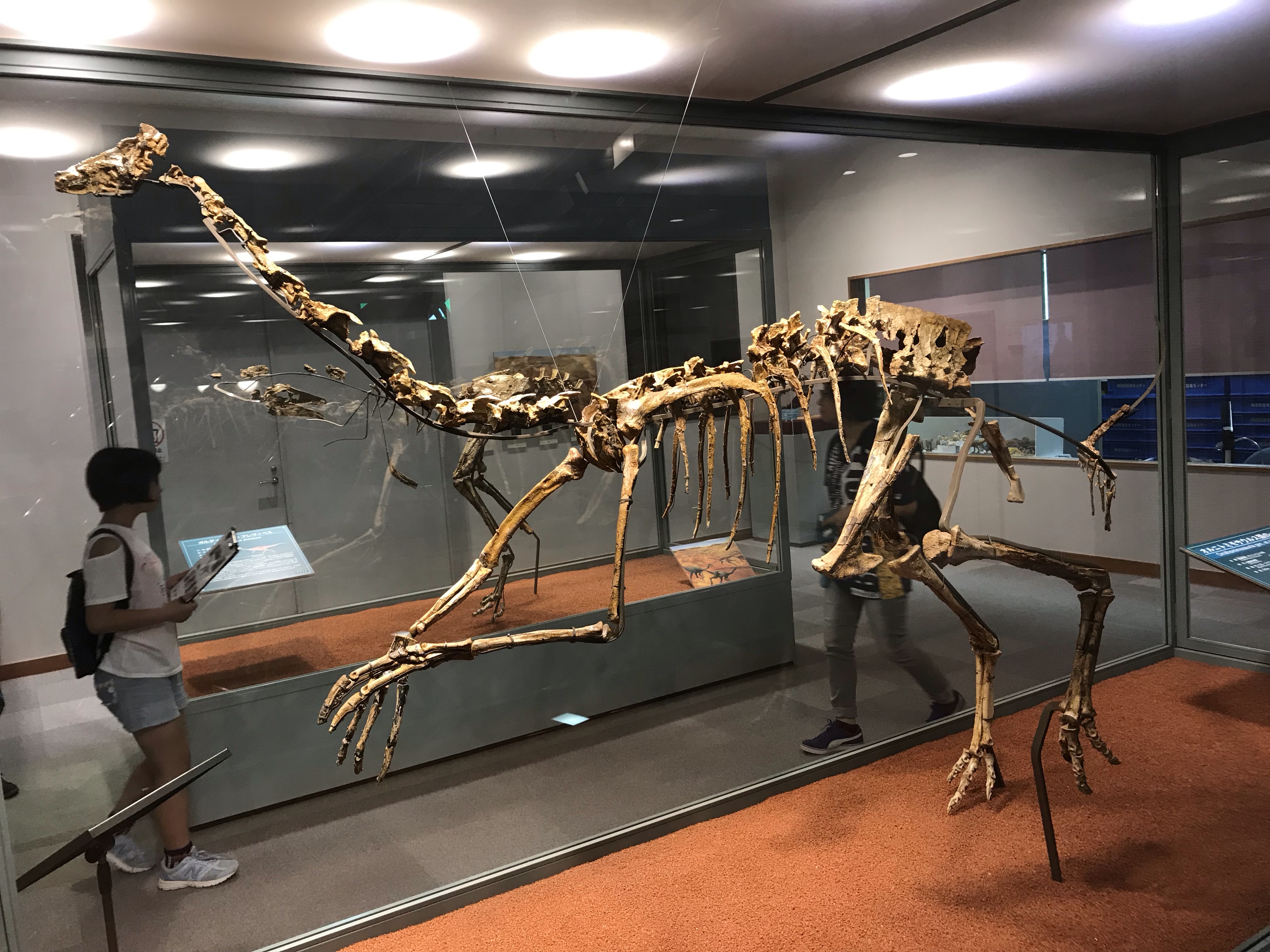 これ神流町恐竜センターにもある「ガリミムス・モンゴリエンシス(Gallimimus mongoliensis)」のマウントと同じ標本のレプリカですよね? どこから来たの? 確実にガリミムス属ではないものの新属記載待ちという曰く付きの方です。