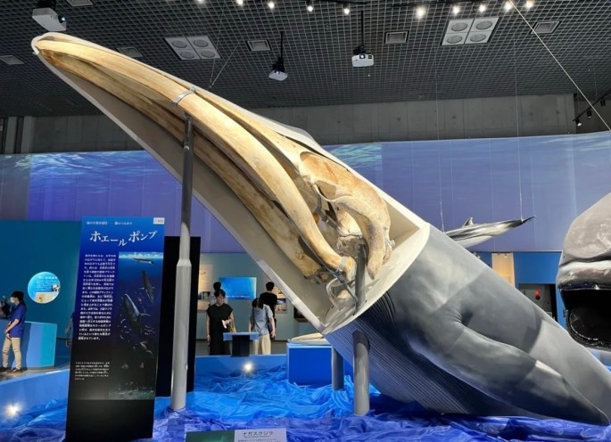 ナガスクジラは裏から見るとこのように実物頭骨が使われています。
