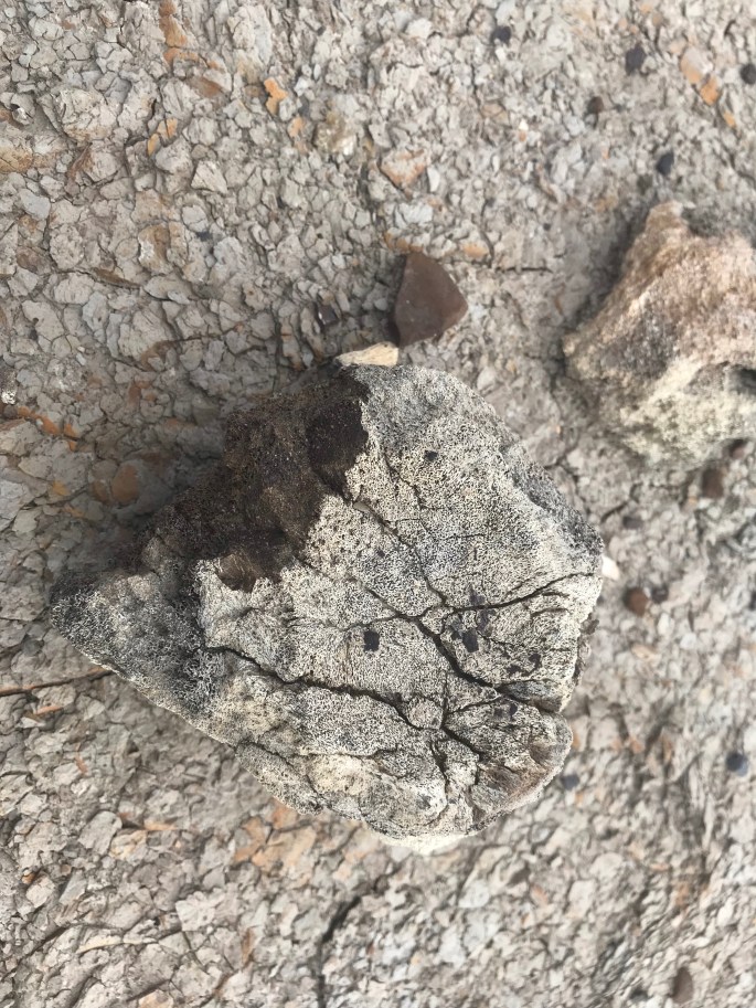 破片のさらに破片のような化石で属種はおろか部位の同定すら不能ですが、ここはトリケラトプスと思っておきましょう。実際その可能性は低くないと思います。