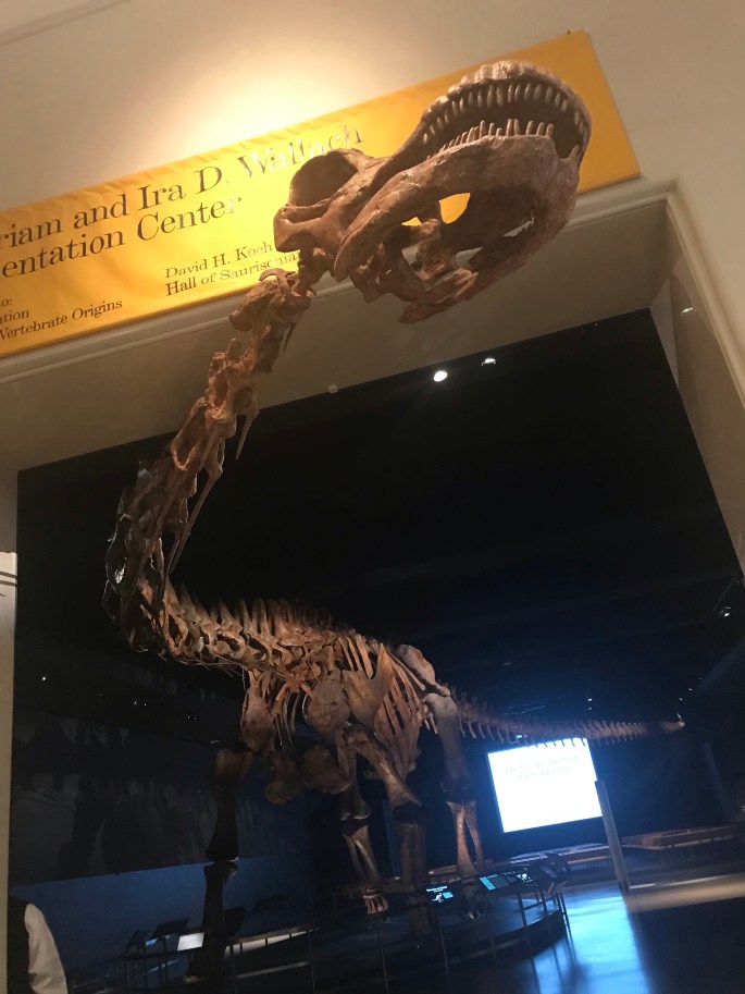 4階にAMNHの紹介動画が垂れ流されているオリエンテーションセンターがあります。そこに、2016年から新登場したのがこちらの枠から頭がはみ出す長大さを誇る竜脚類 Sauropod!